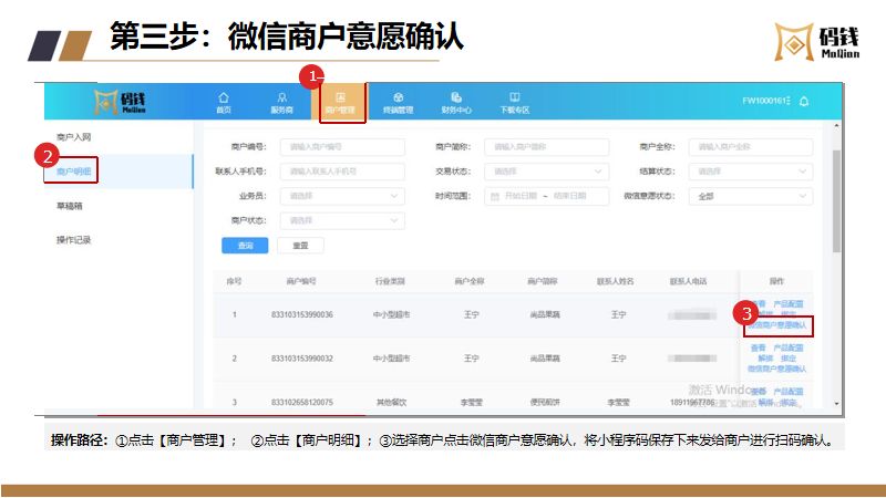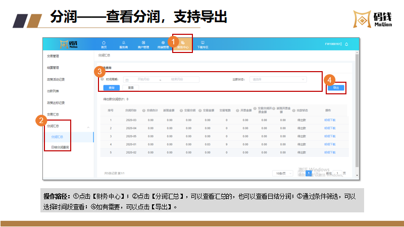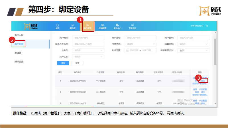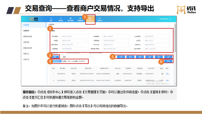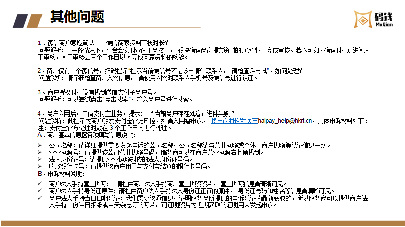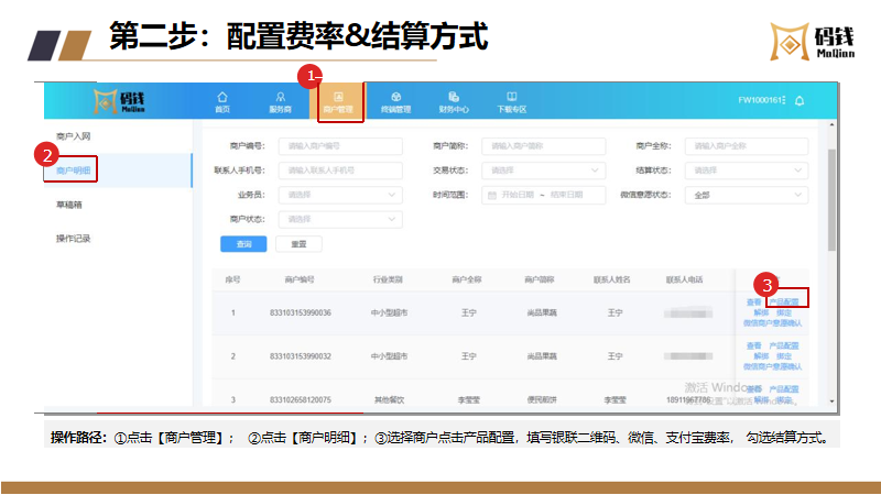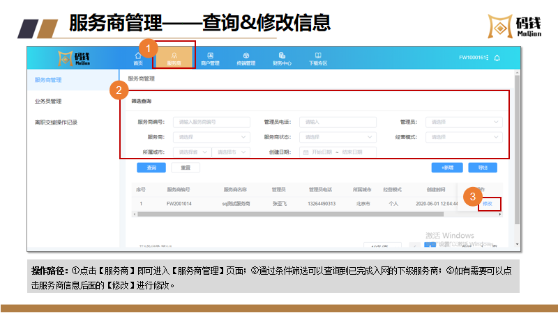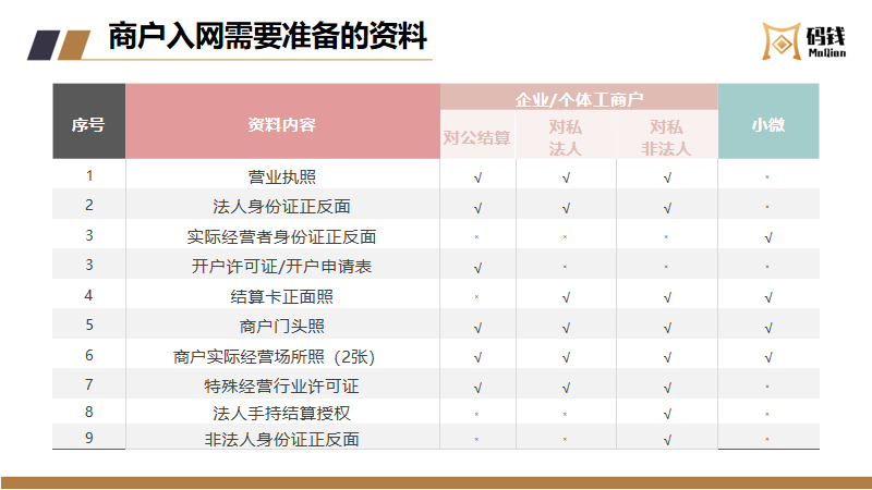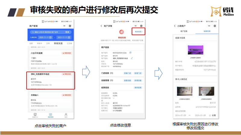 目录 搜索 服务商接入服务商接入流程及说明服务商入网流程微信/支付宝渠道号申请收单外包机构备案指引【盖章流程】中国银行行业码 (主扫JS支付)业务申请业务运营指引商户进件资料规范说明微信、支付宝认证指引终端入网申请流程结算卡变更申请流程商户退汇处理流程商户提额流程商户同营业执照多次入网申请修改商户的微信结算id商户手续费发票申请流程终端采购发票申请流程微信商户意愿确认常见问题--官方版本码钱运营Q&A风控管理风控工单申诉指引微信商家自助申诉操作指引支付宝准入申诉支付宝商家自助申诉指引服务商分润平台操作指引码钱平台——服务商操作指南码钱平台——商家操作指南(商户使用版)硬件设备介绍及相关指引码钱平台——服务商终端采购指南终端型号介绍及价格 暂无相关搜索结果! 码钱平台——服务商操作指南 文档更新时间: 2024-02-23 13:04 作者:康飞