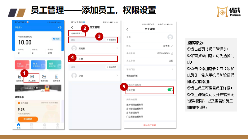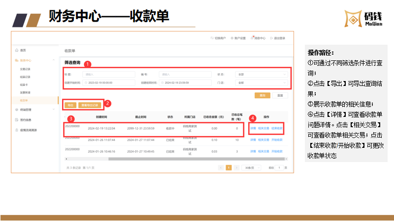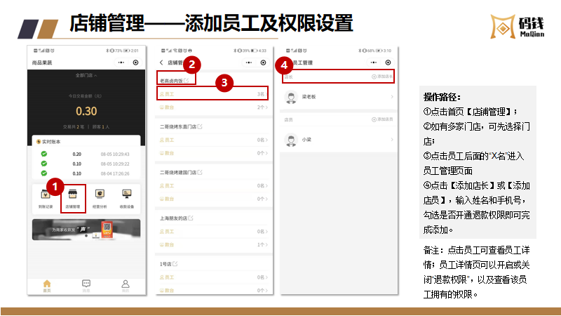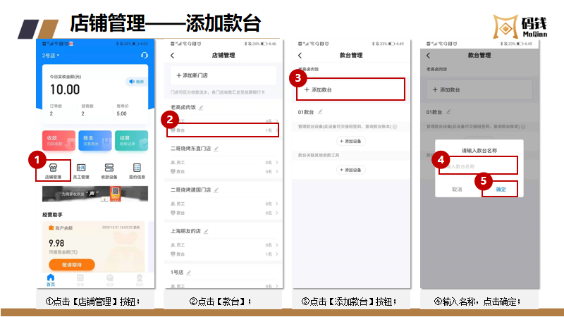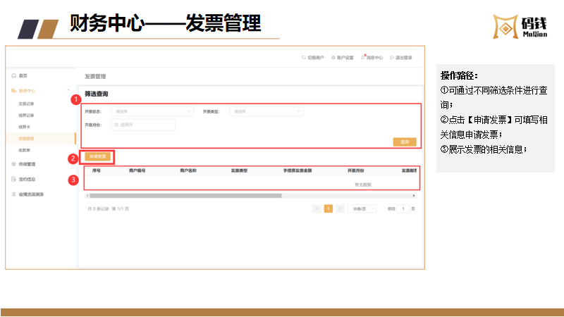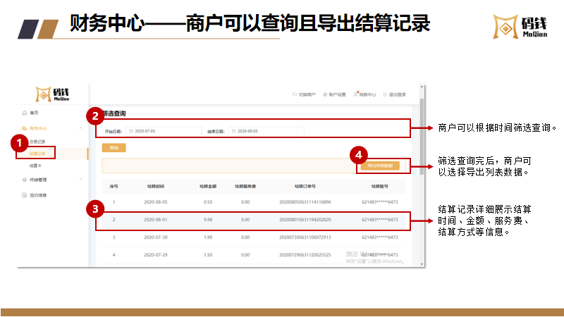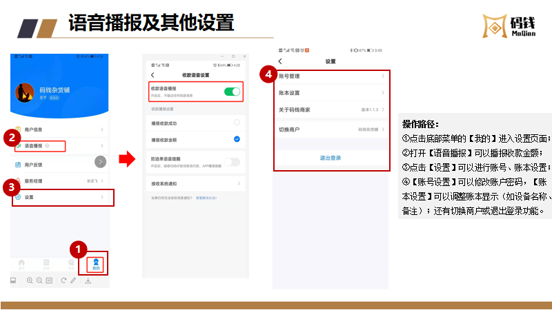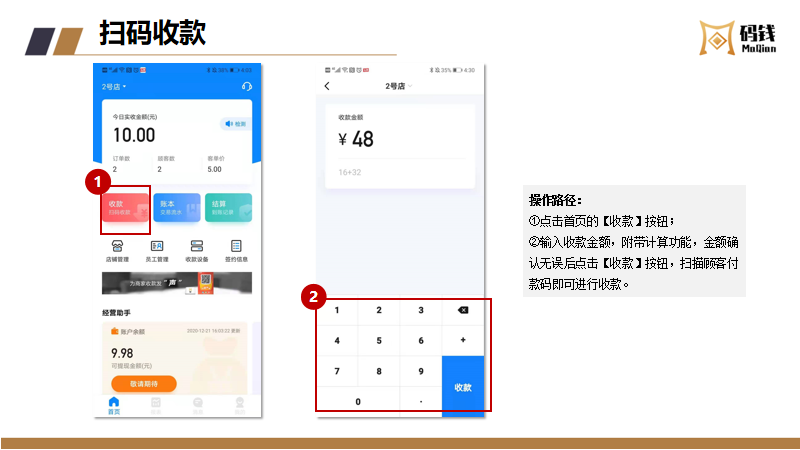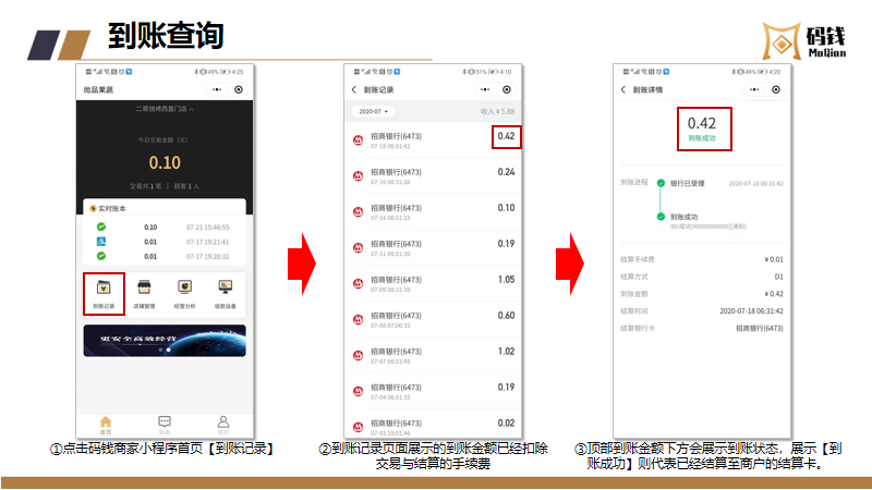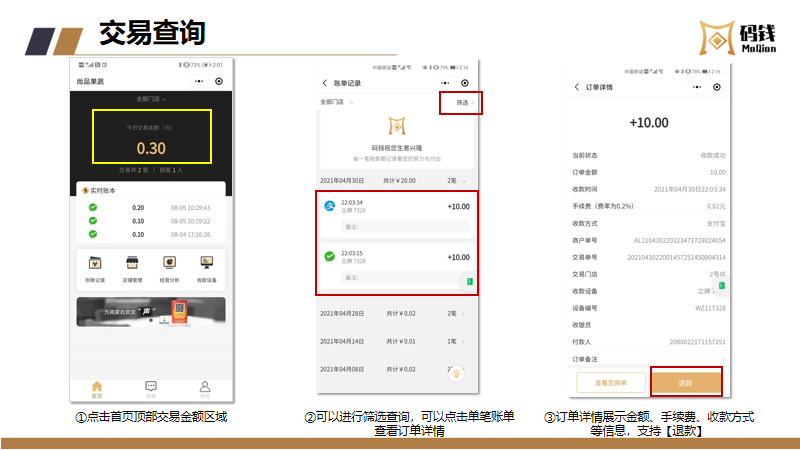 目录 搜索 服务商接入服务商接入流程及说明服务商入网流程微信/支付宝渠道号申请收单外包机构备案指引【盖章流程】中国银行行业码 (主扫JS支付)业务申请业务运营指引商户进件资料规范说明微信、支付宝认证指引终端入网申请流程结算卡变更申请流程商户退汇处理流程商户提额流程商户同营业执照多次入网申请修改商户的微信结算id商户手续费发票申请流程终端采购发票申请流程微信商户意愿确认常见问题--官方版本码钱运营Q&A风控管理风控工单申诉指引微信商家自助申诉操作指引支付宝准入申诉支付宝商家自助申诉指引服务商分润平台操作指引码钱平台——服务商操作指南码钱平台——商家操作指南(商户使用版)硬件设备介绍及相关指引码钱平台——服务商终端采购指南终端型号介绍及价格 暂无相关搜索结果! 码钱平台——商家操作指南(商户使用版) 文档更新时间: 2024-02-23 17:27 作者:康飞